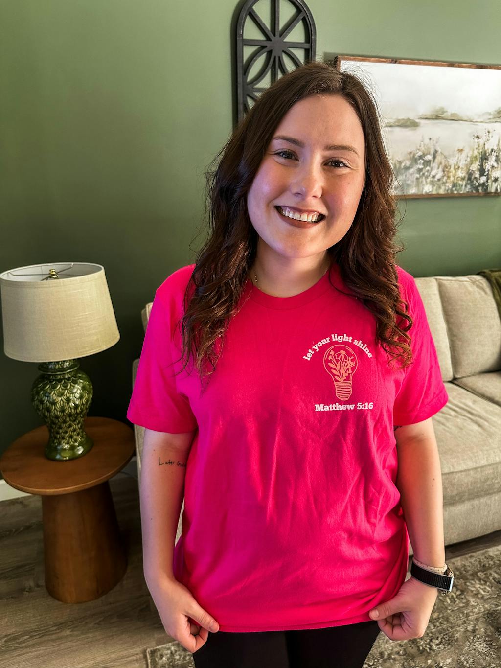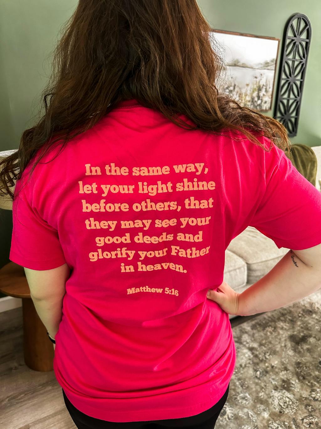 "I ordered from EllyandGrace for the first time in early November. I was so impressed with the shirt quality and workmanship, I ordered two more times! The shirts are so soft and just the right thickness, not the practically see-through fabric many t-shirts are these days. There are so many choices in messages. My shirts have been helpful in starting faith based conversations. I love that!" - Angela
