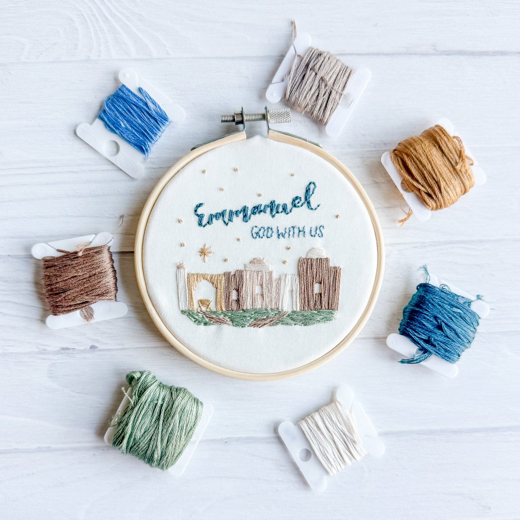 This embroidery set is 3 DIY beautiful Christmas ornaments: Prince of Peace, Glory to God in the Highest, and Emmanuel, God With Us!