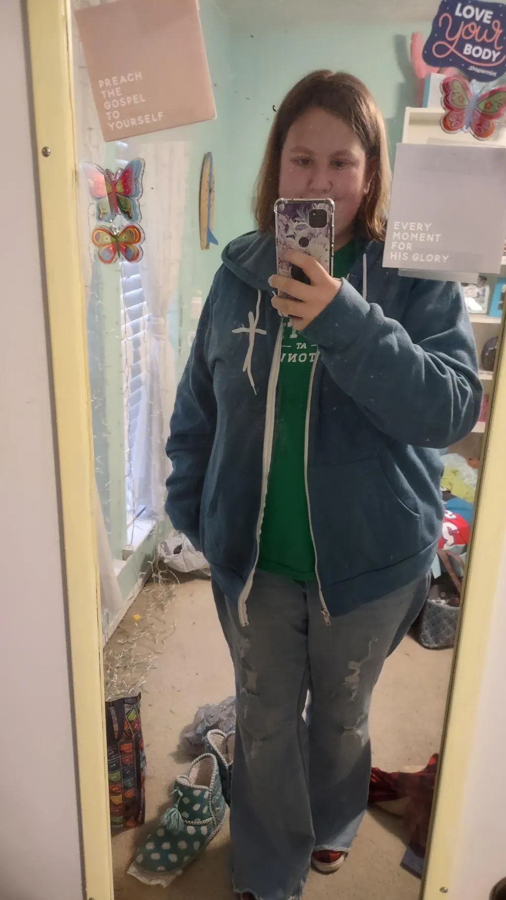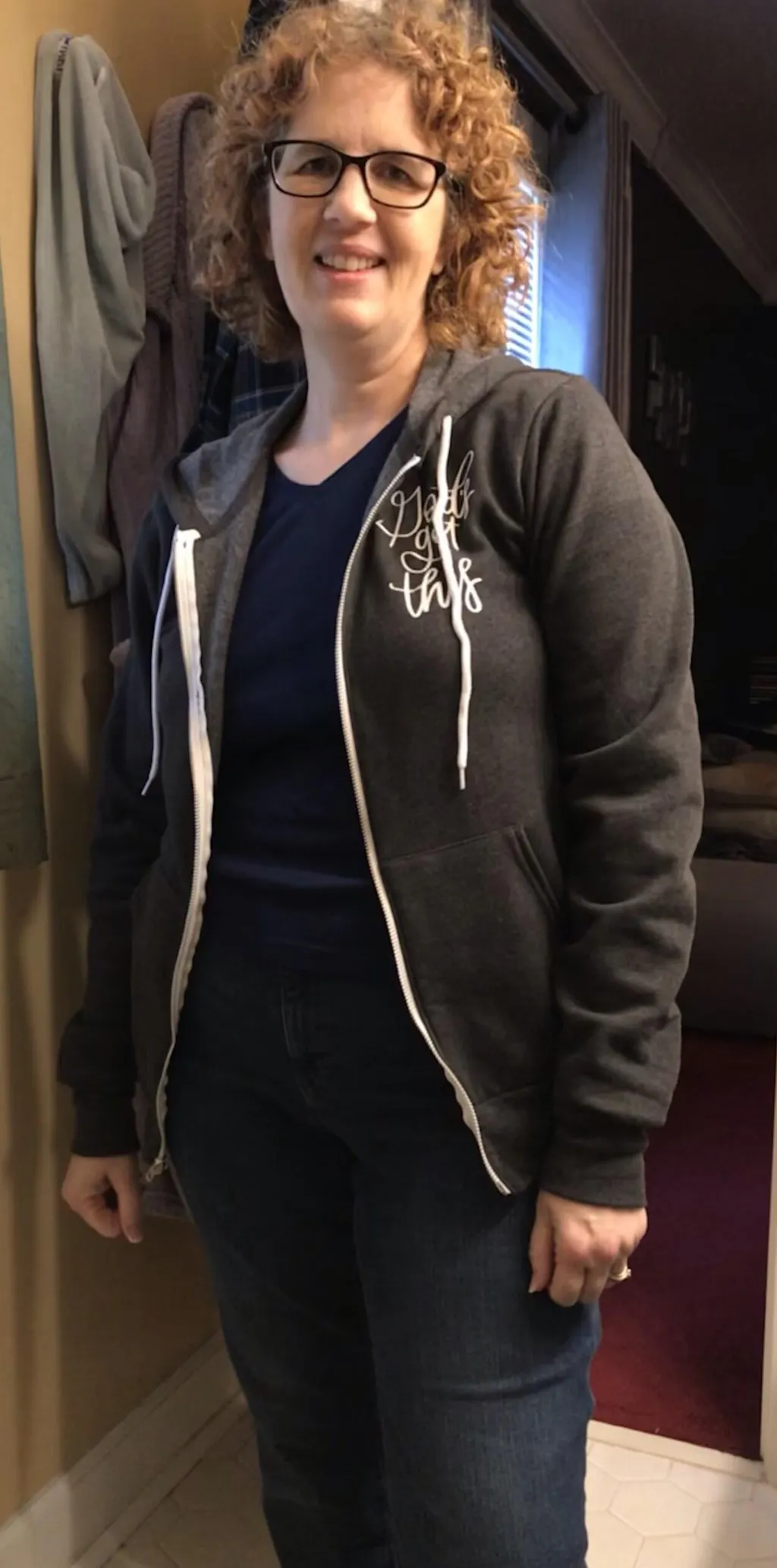 - True to Size Unisex Fit, full zip with pockets, Lauren is wearing a large