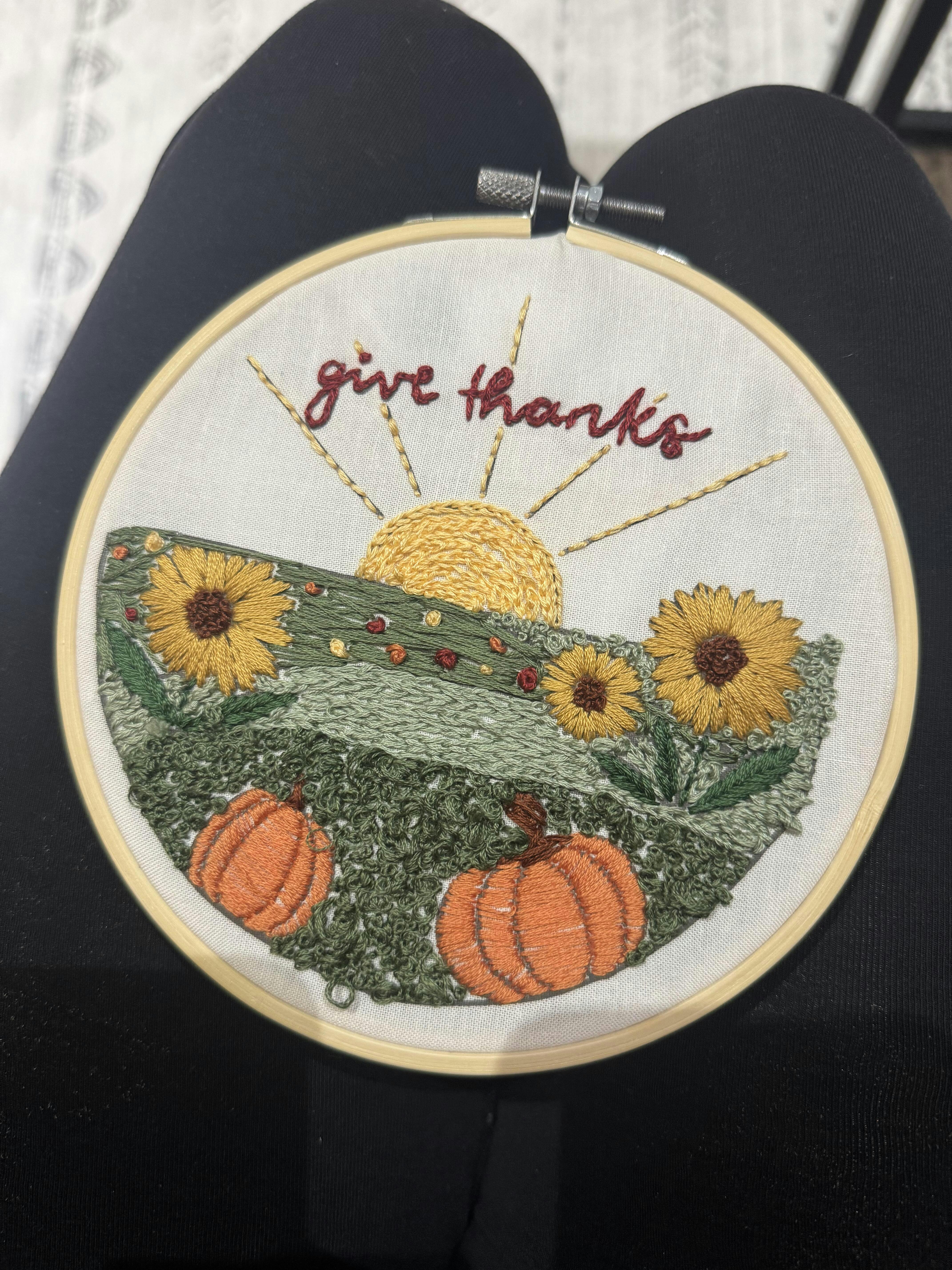 A: You can gift it to a friend (I’ve done this with several of my projects!), hang it on your wall or get a hoop stand and keep it on a dresser