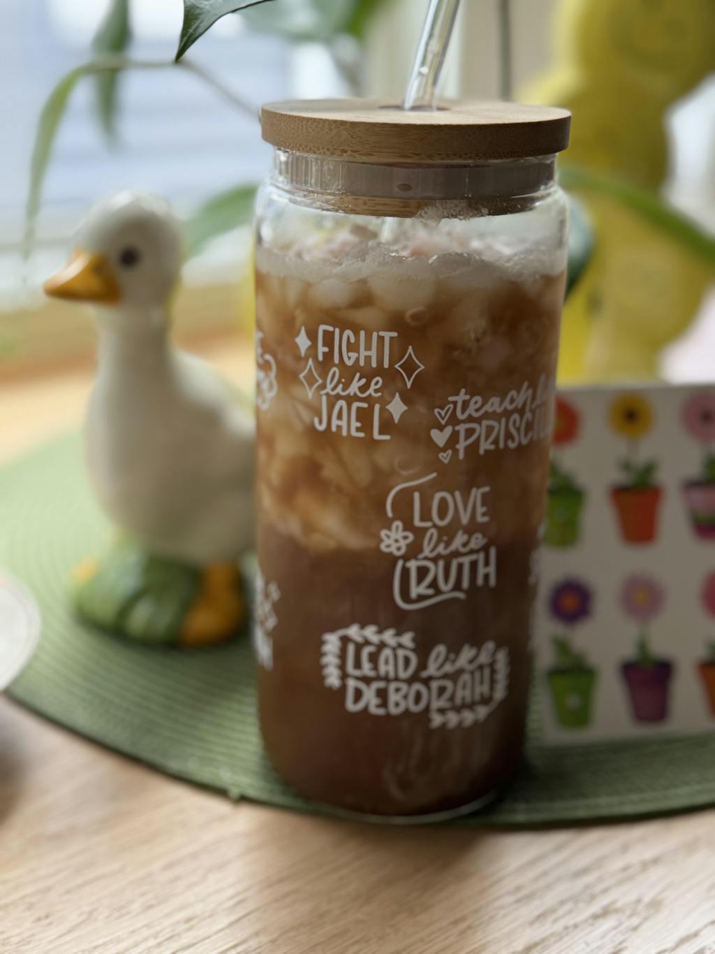 >> Glass tumblers with bamboo lid & straw - eco-friendly flair